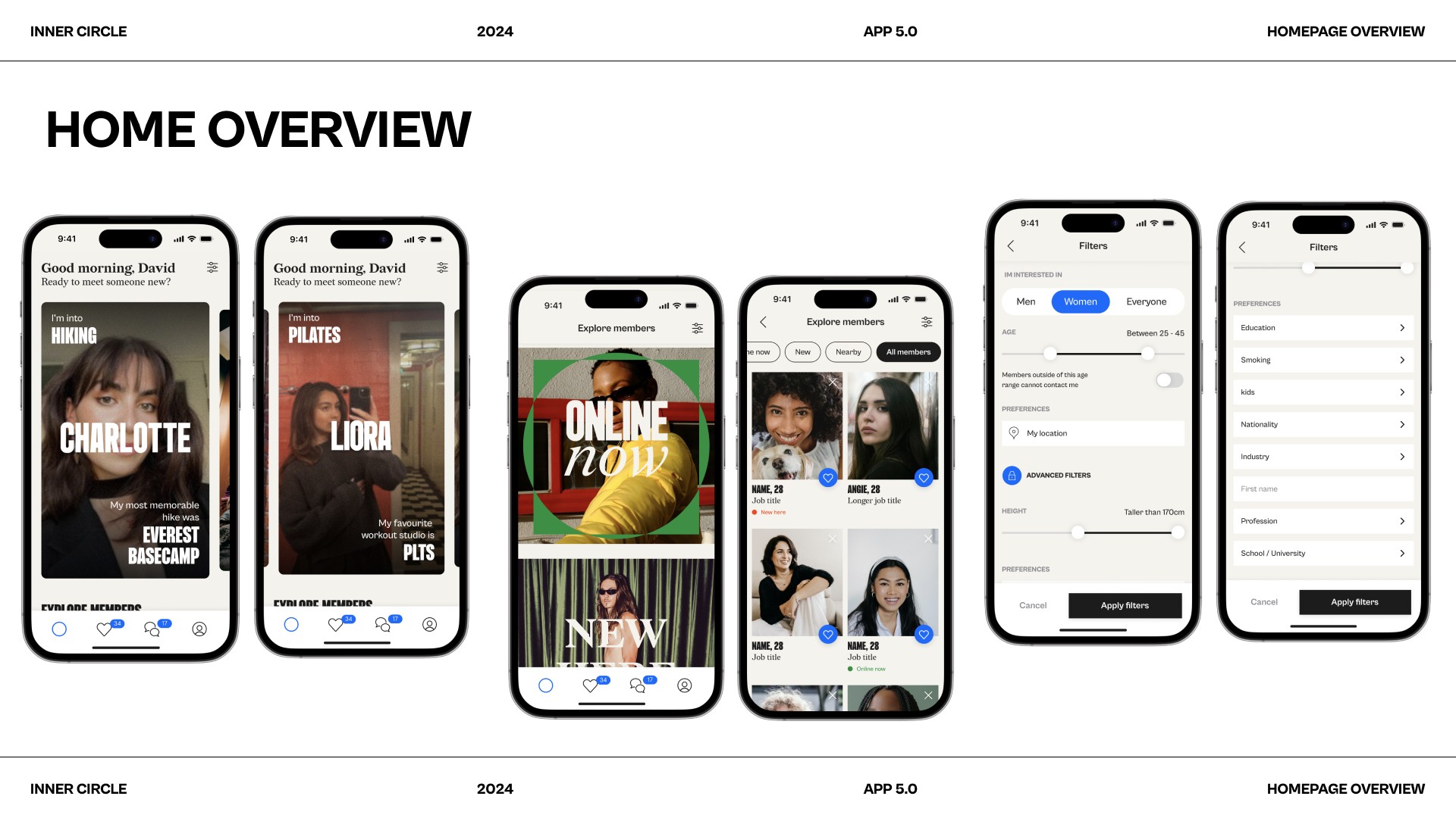 After years of incremental refreshes, Inner Circle needed a bold visual transformation to support its strategic repositioning as a premium lifestyle-based dating app.